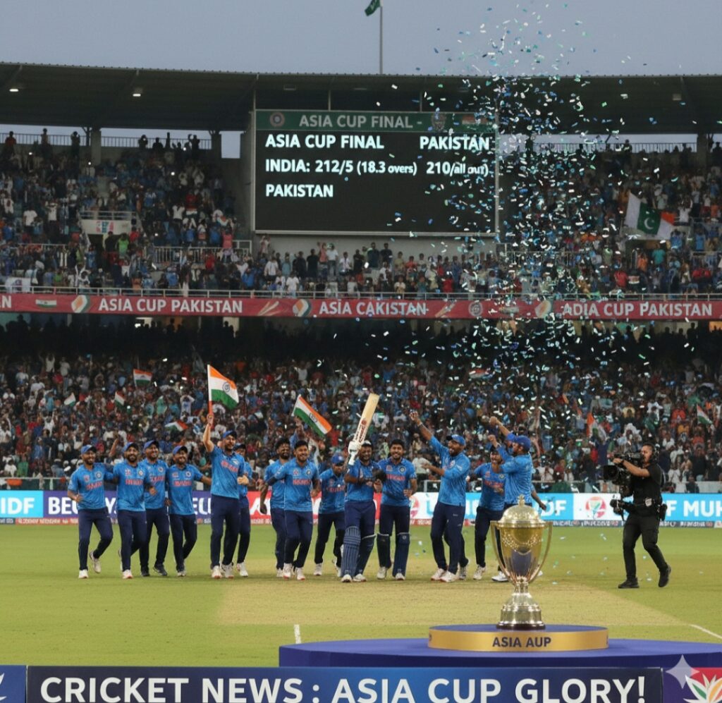 In the Asia Cup 2025 final, India defeated Pakistan by 5 wickets, chasing down 147 runs. India finished at 150/5, while Pakistan was bowled out for 146.